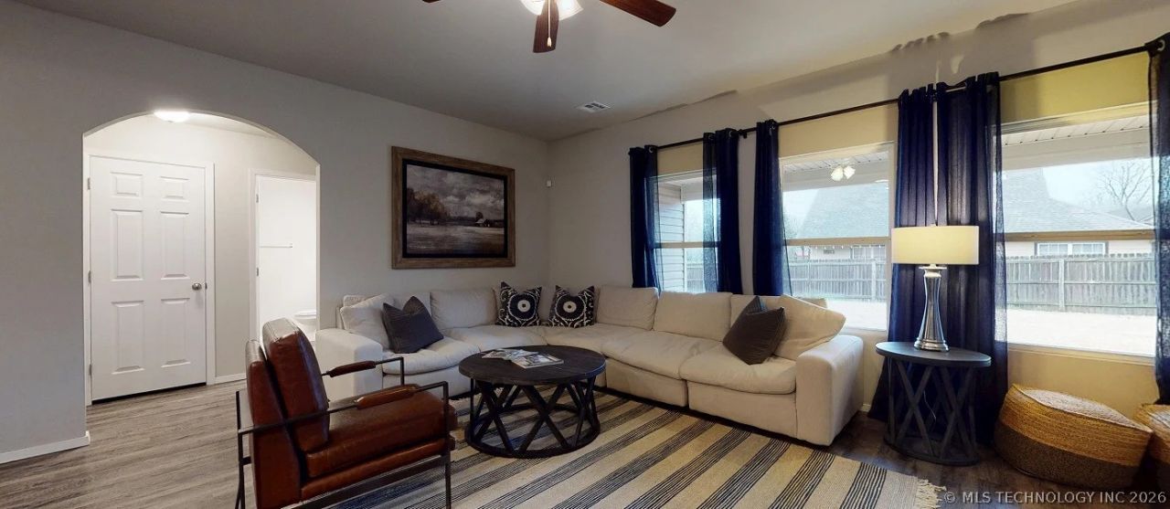 NEW CONSTRUCTION! The Hartford Plan by Lennar Homes. FULL FENCE, WASHER & DRYER, BLINDS & REFRIGERATOR INCLUDED! Welcome to this perfectly designed one-level home featuring a spacious and inviting layout perfect for entertaining guests. Step inside through the wide entry into a Flexible space that can serve as a formal dining room, office, or additional living area. The open-concept family room flows seamlessly into the kitchen, complete with a peninsula, Quartz counter tops and a charming breakfast nook. Enjoy abundant natural light from the windows lining the back wall of the living area, offering a perfect view of the patio/backyard. The desirable Split floor plan ensures privacy, with the primary suite tucked away and offering a generous Walk-in closet, private bath, and separate toilet room. Convenient laundry room just off the kitchen includes excellent storage. This well-planned home offers great flow and functionality in every detail. Discover South Broken Arrow's hottest new community-offering the most affordable full-brick new homes in the area! Ideally located just off the Creek Turnpike, across 121st from the Warren Theatre, and minutes from Elam Park, shopping, dining, and top-rated Aspen Creek Elementary, this neighborhood blends unbeatable convenience with modern, energy-efficient living in a thriving family-friendly setting. HURRY HOME! Estimated completion: February